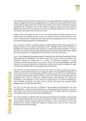 to the practical aspect where they develop their cookery skills and the excitement of making