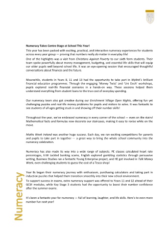 writing, Business Studies ran a fantastic Young Enterprise project, and HE got involved in Talk Money