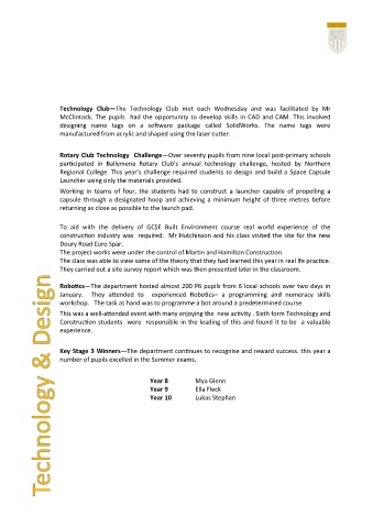 Technology Club—The Technology Club met each Wednesday and was facilitated by Mr