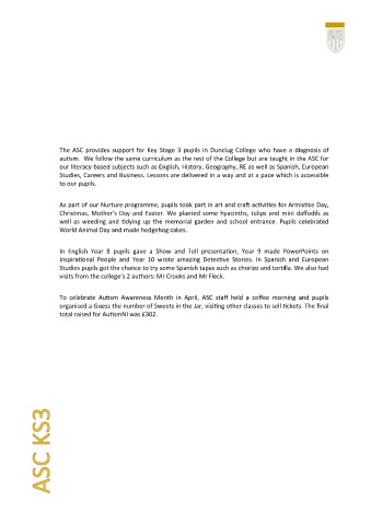 autism. We follow the same curriculum as the rest of the College but are taught in the ASC for