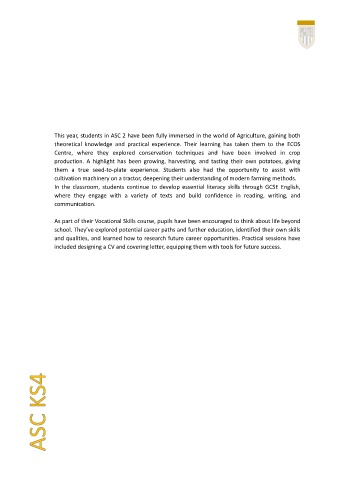 This year, students in ASC 2 have been fully immersed in the world of Agriculture, gaining both