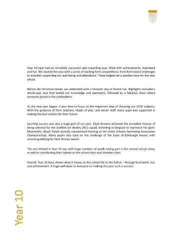 Year 10 have had an incredibly successful and rewarding year, filled with achievements, teamwork