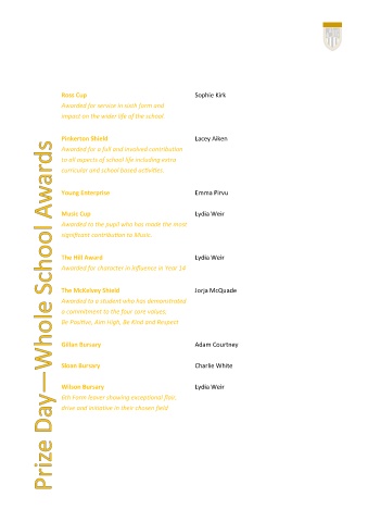 Awarded for character in influence in Year 14