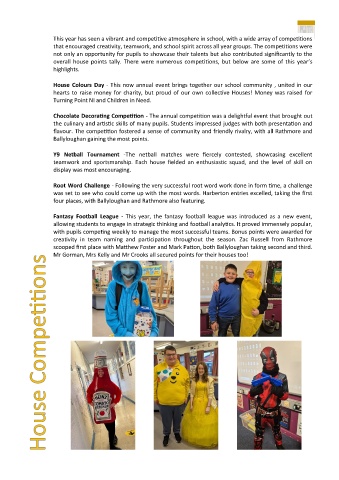 that encouraged creativity, teamwork, and school spirit across all year groups. The competitions were
