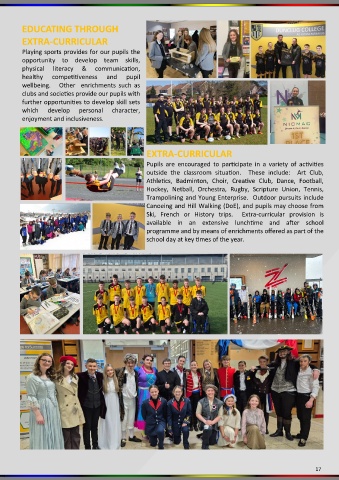 Trampolining and Young Enterprise. Outdoor pursuits include