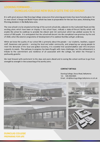 It is with great pleasure that Dunclug College announces that planning permission has been formally given for
